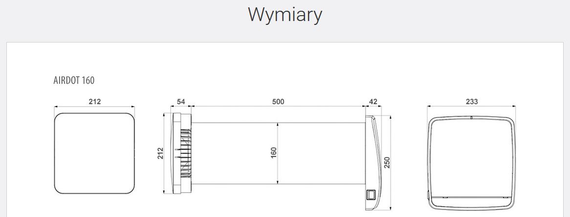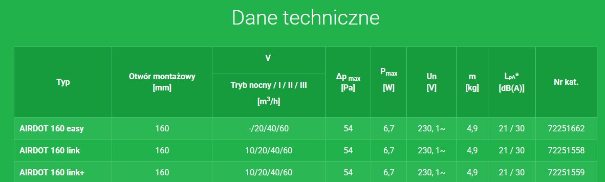Specyfikacja urządzenia w wersji z komunikacją przewodową AIRDOT Link ( model dostępny na tej ofercie )