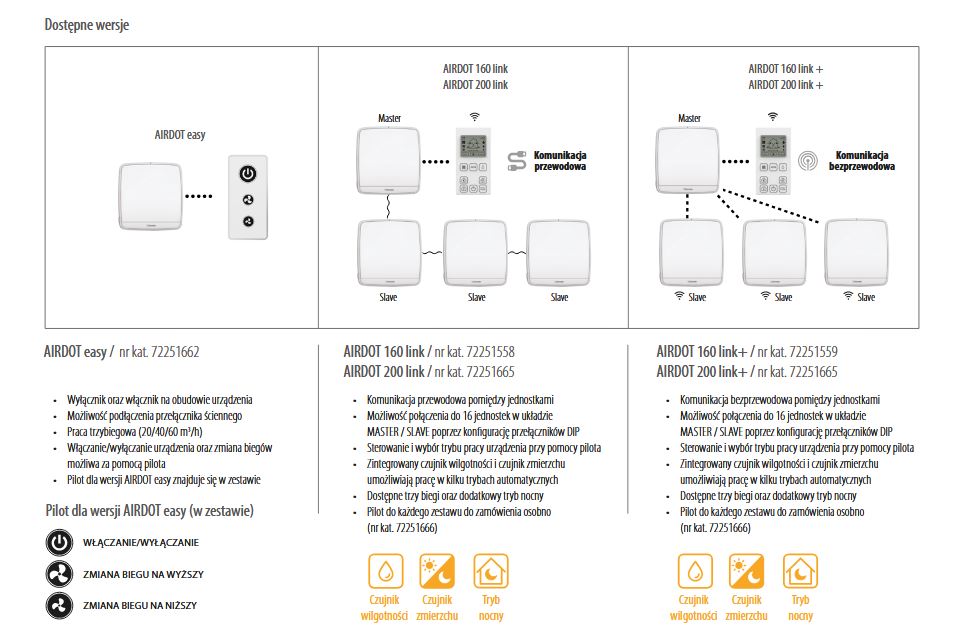 Modele AIRDOT 160 link komunikują się ze sobą do 16 urządzeń. Wersja link stosuje komunikację przewodową.