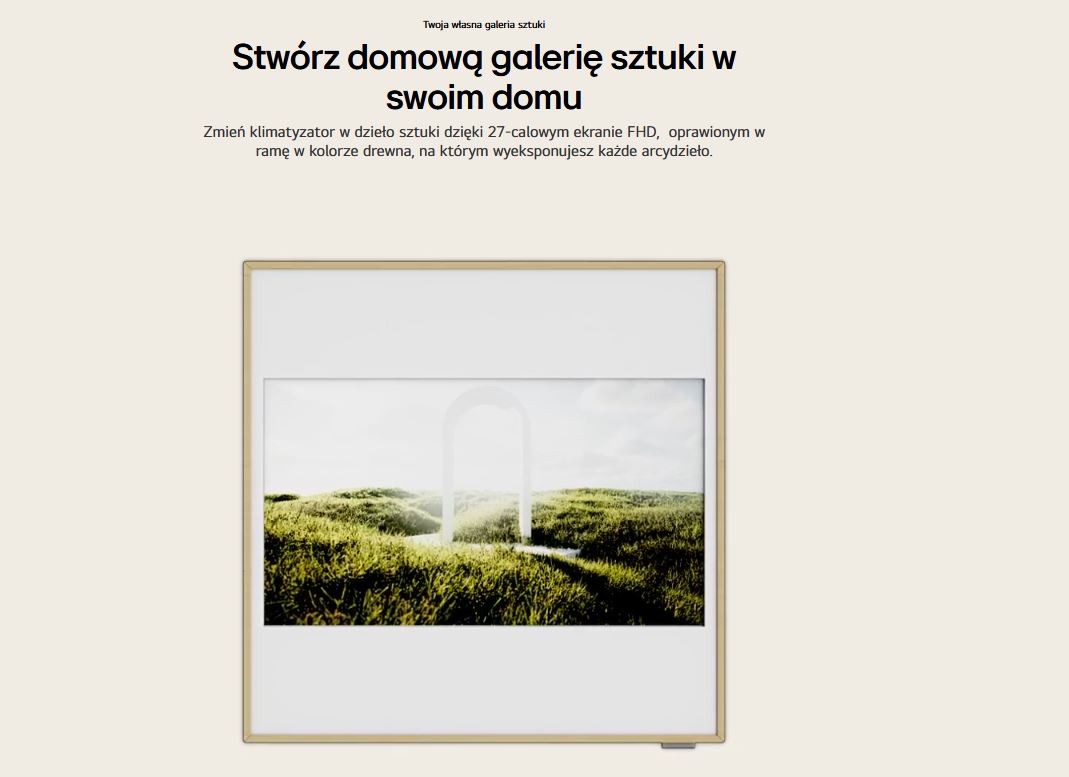 Klimatyzator ścienny LG Artcool Gallery LCD łączy w sobie elegancję dzieła sztuki z najnowszą technologią chłodzenia i ogrzewania, prezentując się wyjątkowo w każdym wnętrzu dzięki 27-calowemu ekranowi LCD otoczonym stylową ramą.