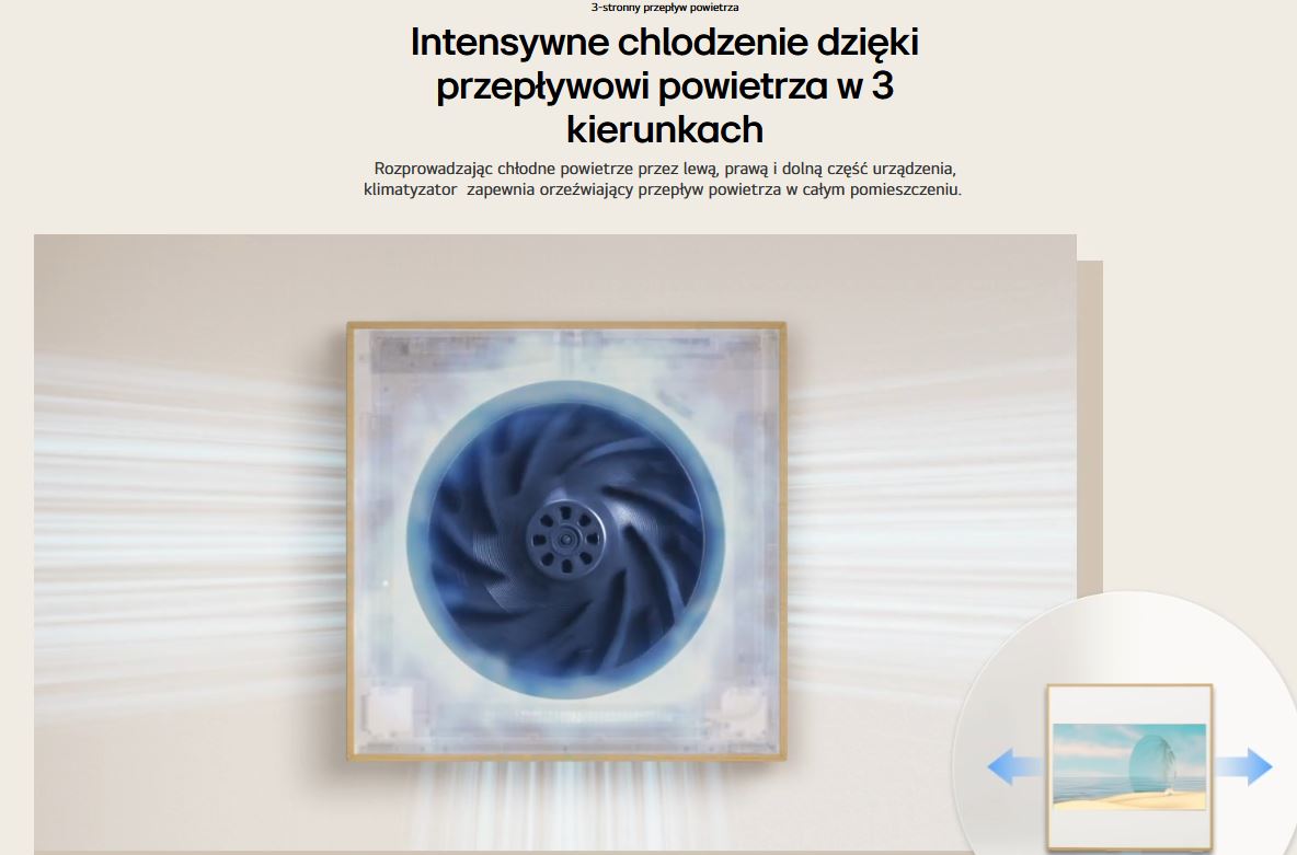 Klimatyzacja z serii Artcool Gallery dysponuje funkcją Auto Swing, która polega na automatycznym sterowaniu nawiewem z trzech otworów po bokach i na dole jednostki wewnętrznej. W ten sposób urządzenie jest w stanie równomiernie rozprowadzić schłodzone lub ogrzane powietrze, aby w całym pomieszczeniu zapanowała stabilna temperatura. Użytkownicy mają zapewniony wysoki komfort przebywania we wnętrzu niezależnie od tego, gdzie dokładnie się znajdują.
