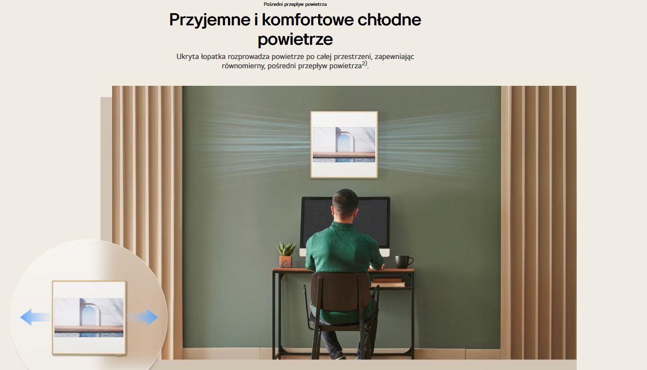 Praca klimatyzacji jest cicha (20-45 dB) oraz energooszczędna (klasa energetyczna A++ dla chłodzenia).