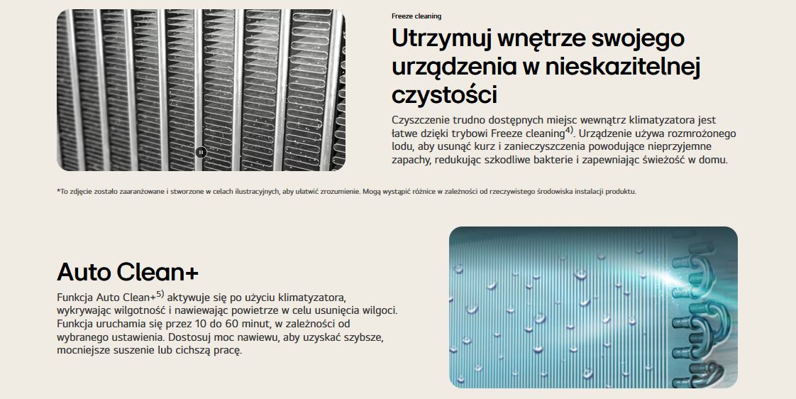 Ciekawa jest tutaj również funkcja Auto Clean+ dbająca o prawidłowy poziom wilgotności powietrza.