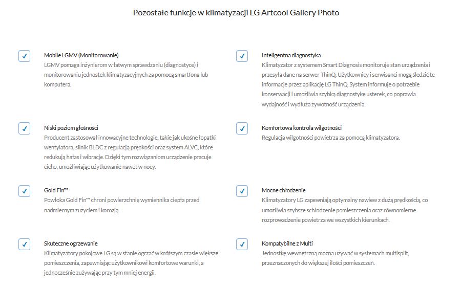 Cechy charakterystyczne urządzenia ARTCOOL GALLERY LCD :