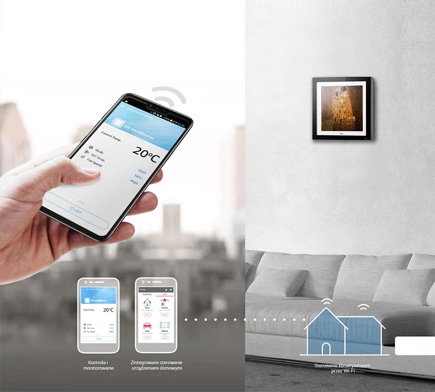 Z wykorzystaniem aplikacji mobilnej LG ThinQ użytkownik jest w stanie sterować klimatyzacją LG Artcool Gallery z niemal każdego miejsca na Ziemi. Sprzęt posiada moduł Wi-Fi, który można połączyć z domową siecią internetową. Oprogramowanie dostępne jest na urządzenia z systemami Android oraz iOS. Oferuje m.in. takie opcje jak: