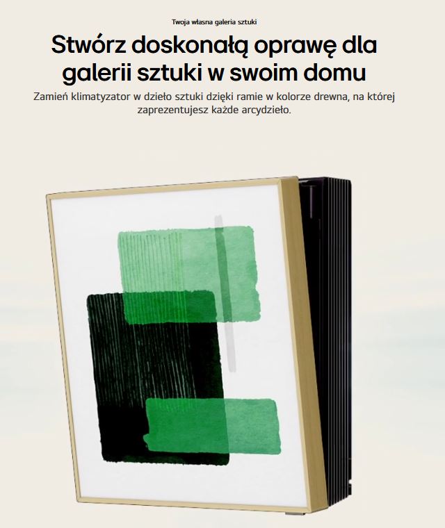 Stwórz idealną aranżację galerii sztuki w swoim domu, przekształcając klimatyzator w wyjątkowy element dekoracyjny za pomocą drewnianej ramy, na której wyeksponujesz dowolne dzieło sztuki. Uwiecznij najcenniejsze chwile, ozdabiając klimatyzator ulubionymi fotografiami. Personalizuj swoje wnętrze, oprawiając ulubione zdjęcia i tworząc niepowtarzalną galerię. Wykorzystaj swoje ulubione zdjęcia i plakaty, umieszczając je w eleganckiej ramie, którą możesz swobodnie zmieniać.