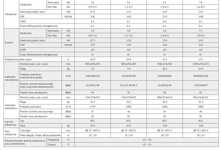 Jednostki wewnętrzne mają biały panel z elektronicznym wyświetlaczem temperatury, o zaokrąglonych bokach inspirowanych falami oceanu. Urządzenia sprawdzą się w mieszkaniach, domach oraz niedużych pomieszczeniach komercyjnych - gwarantując komfortową i cichą pracę.