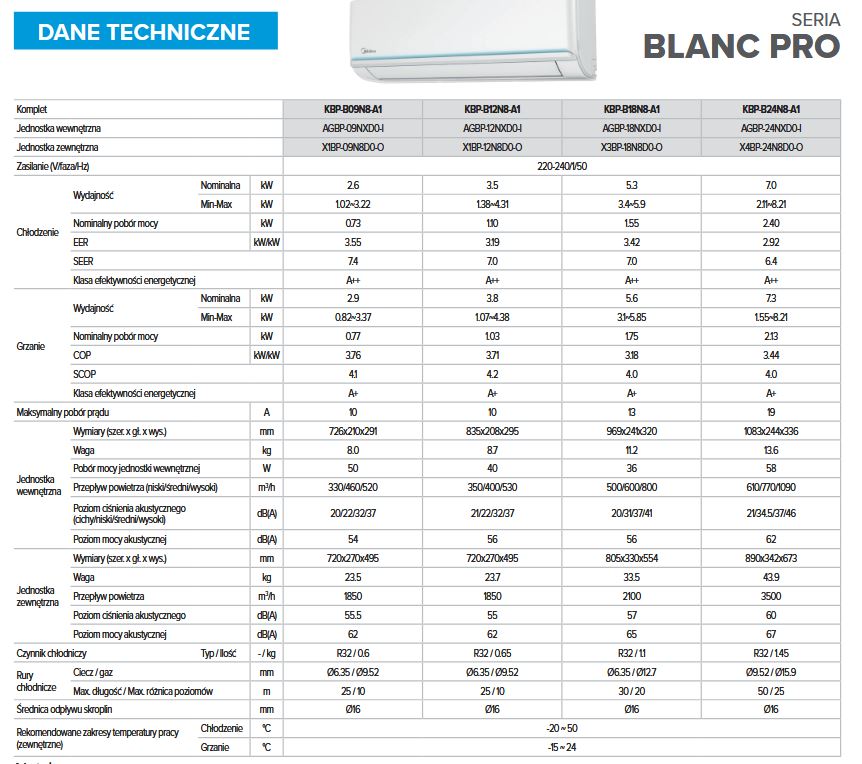 Zalety klimatyzacji Midea Blanc Pro: