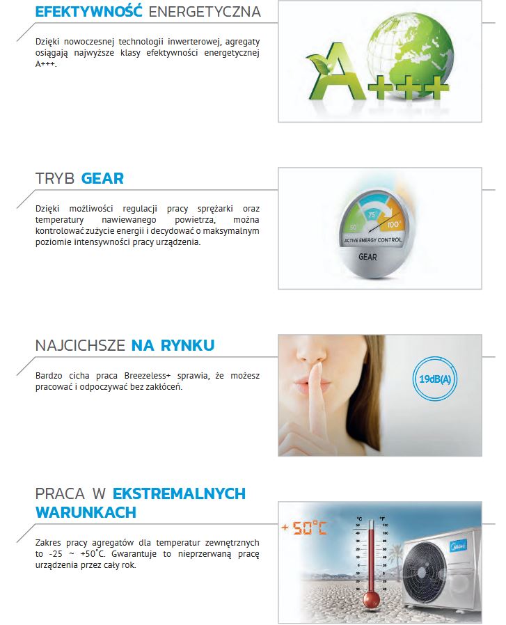 Dzięki nowoczesnej technologii Inverter Quattro, agregaty osiągają najwyższą efektywność energetyczną - klasa A+++.