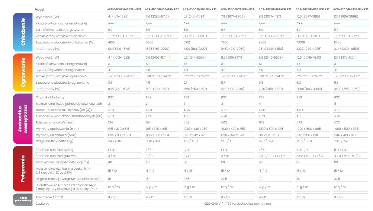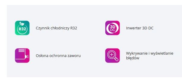 Wszystkie jednostki zewnętrzne posiadają ekologiczny czynnik R32 i mogą pracować w trybie grzania przy temperaturach dochodzących na zewnątrz do -20°C.