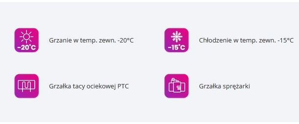 Ogrzewanie do -20°C – klimatyzator pracuje efektywnie, nawet w ekstremalnie niskich temperaturach zewnętrznych, oferując niezawodne ogrzewanie.