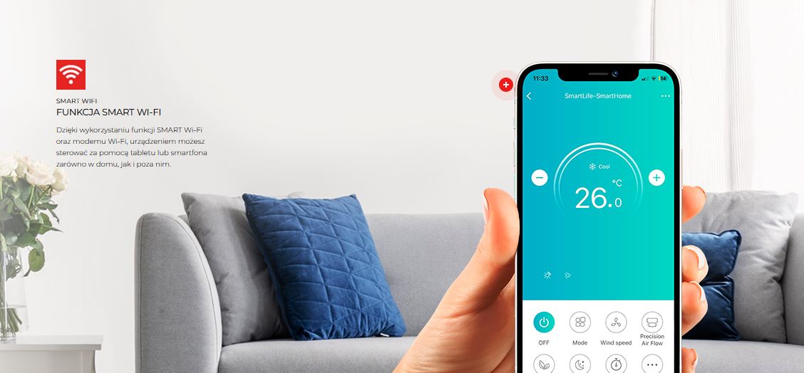 Użytkownicy mają możliwość sterowania pracą klimatyzatora Rotenso Elis X zarówno w domu, jak i poza nim. Funkcja SMART WiFi pozwala na połączenie urządzenia z domową siecią internetową. Po zainstalowaniu na tablecie lub smartfonie aplikacji SMART Life (dostępnej na iOS oraz Androida) obsługującej kontrolę sprzętu od japońskiego producenta, użytkownik uzyskuje dostęp do takich funkcji jak: