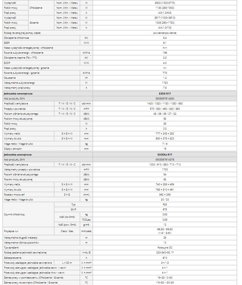 Została mu przyznana klasa energetyczna A++ dla trybu chłodzenia oraz A+ dla grzania.