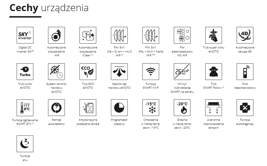 Funkcje klimatyzatora: