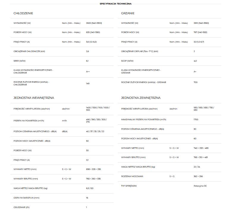 Klimatyzator ten łączy w sobie elegancki design z zaawansowanymi technologicznie funkcjami, takimi jak innowacyjny system nawiewu 4D, który gwarantuje efektywne i równomierne rozprowadzanie powietrza.
