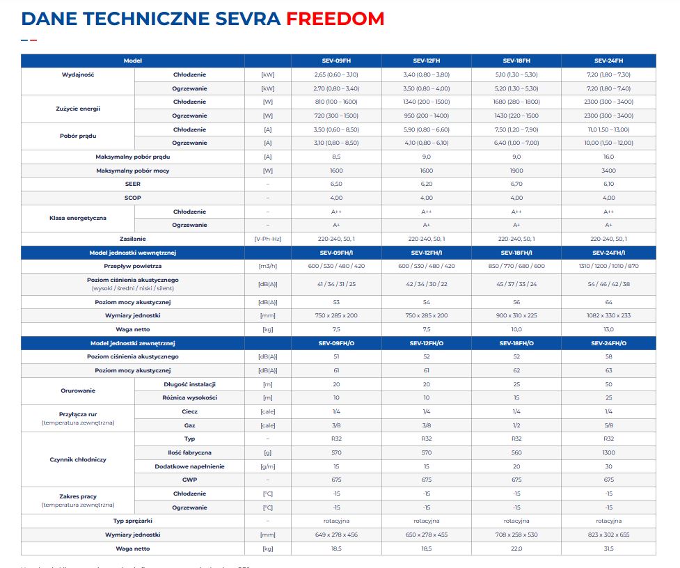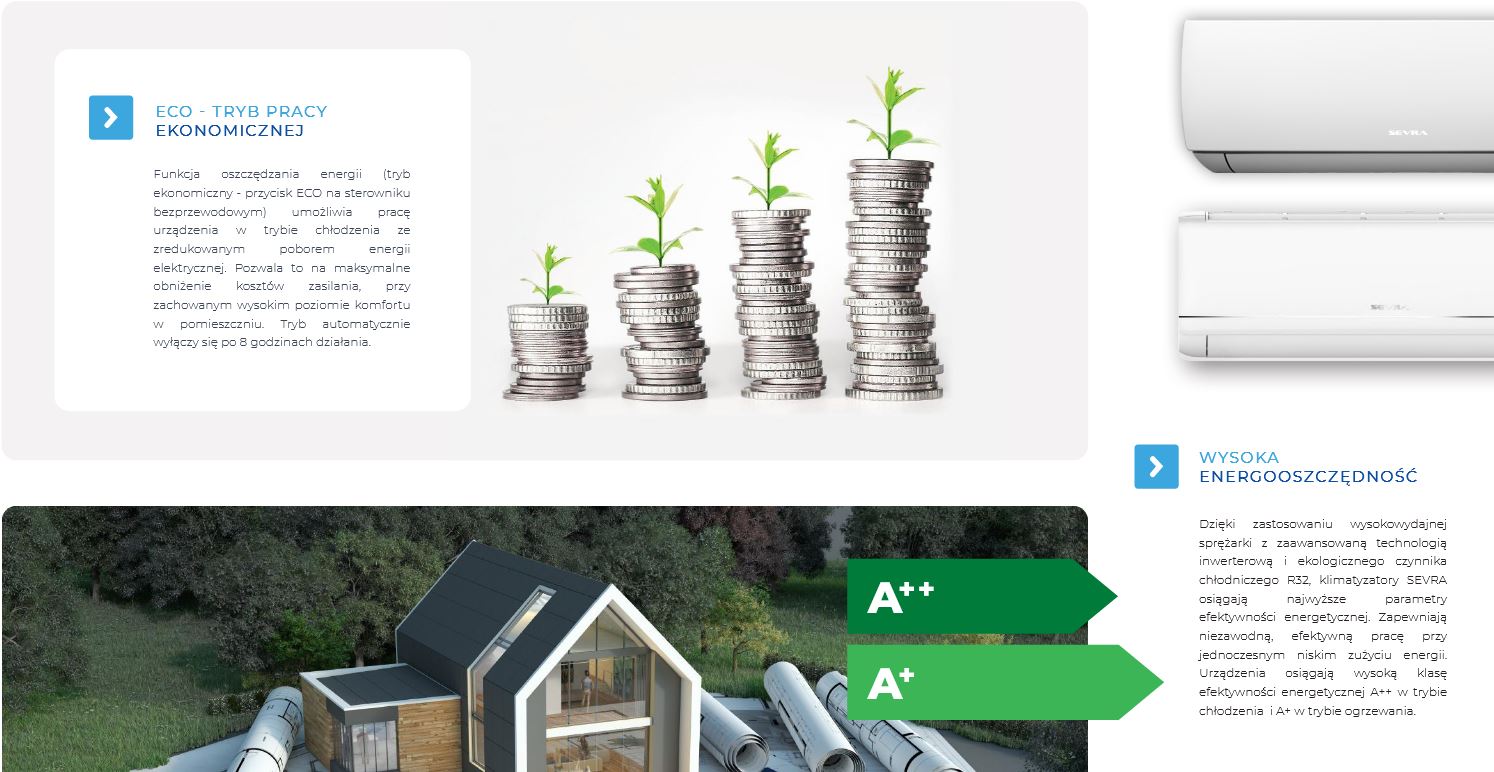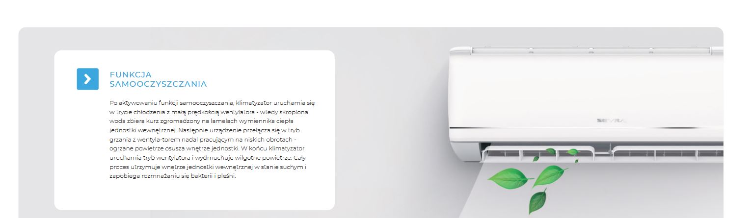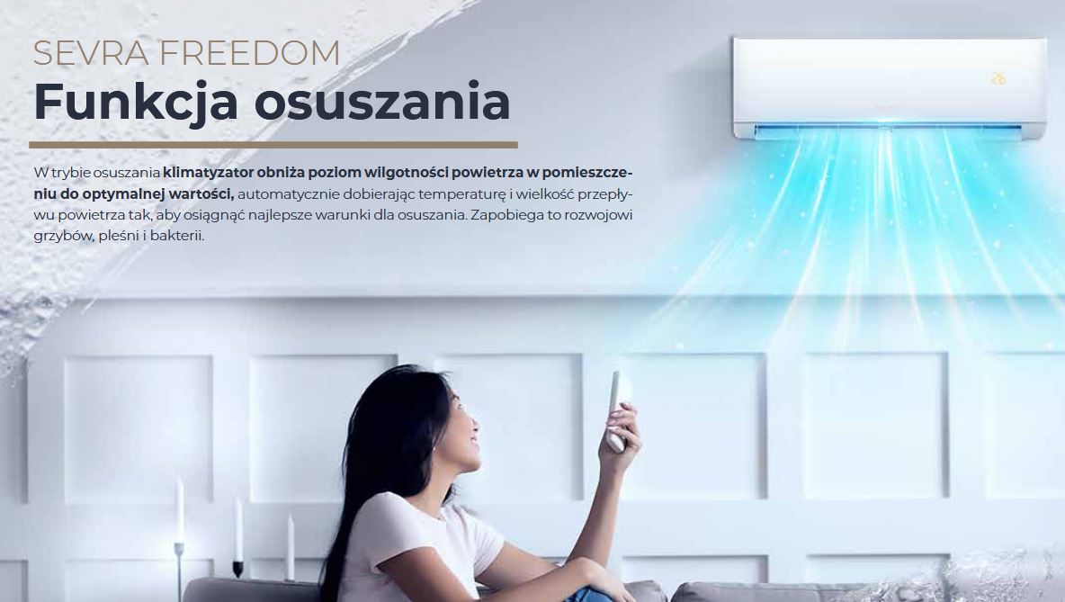 Ponadto klimatyzacja Sevra Freedom posiada tryby pracy: nocnej, osuszania oraz automatyczny.