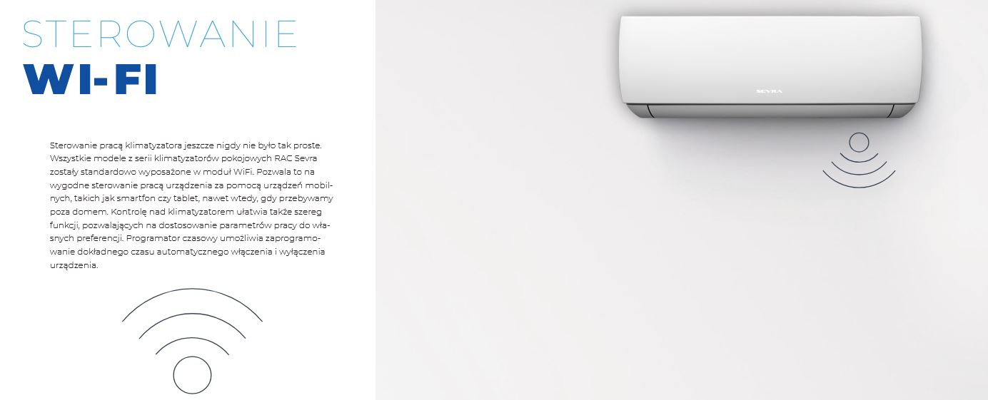 Wbudowany moduł Wi-Fi pozwala wygodnie sterować pracą urządzenia przez aplikację AC Freedom na telefonie bądź tablecie. Sevra Freedom to klimatyzacja z bogatą funkcjonalnością.