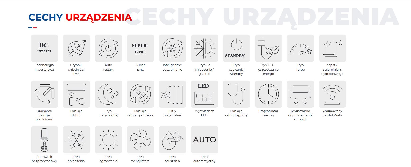 Funkcje klimatyzatora: