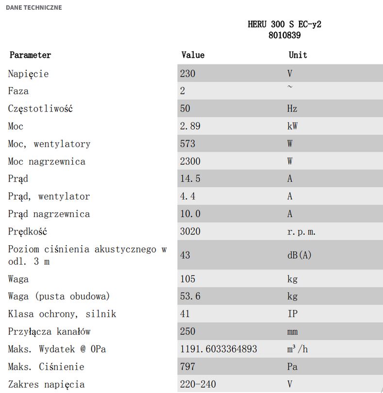 • HERU 100S i HERU 160S są wyposażone we wtyczkę elektryczną. HERU 200S i HERU 300S są dostarczane z kablem do stałej instalacji.