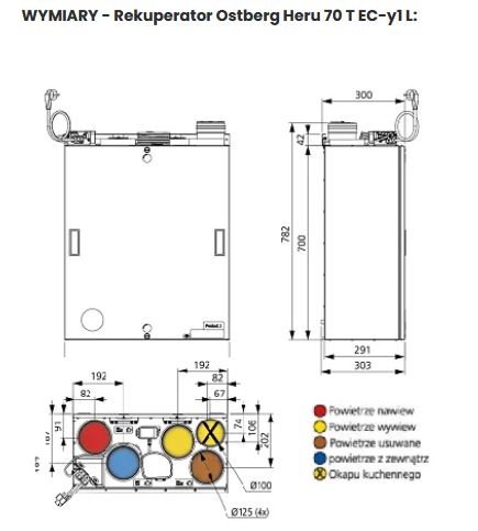 Po oddaniu ciepła, schłodzone lub niepodgrzane powietrze jest wyrzucane na zewnątrz przez króciec wywiewny.