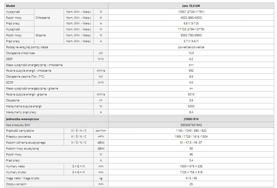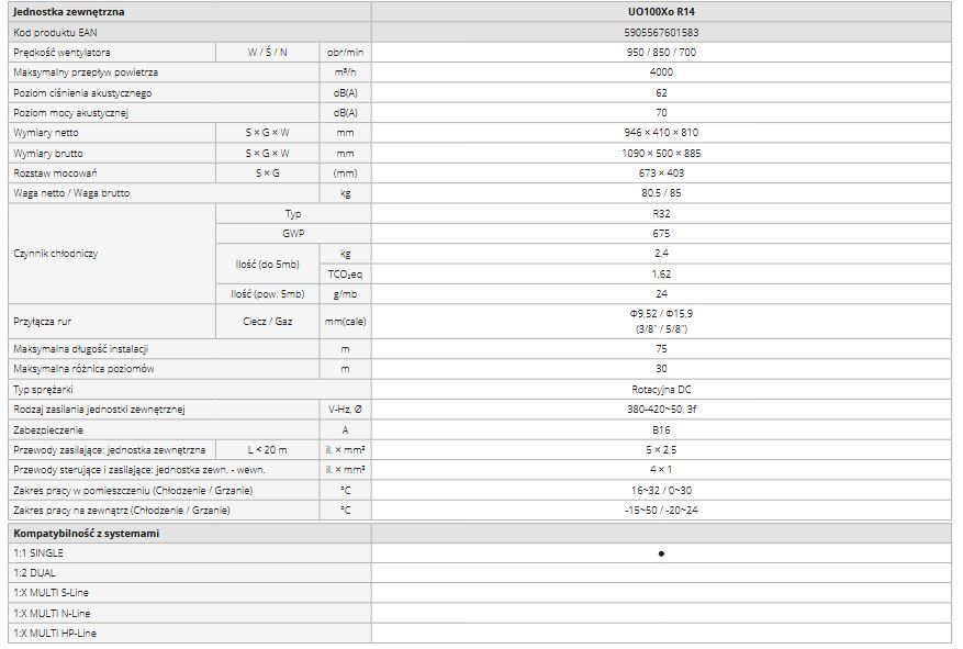Jest dostępny w siedmiu wydajnościach (od 5,3 kW do 15,2 kW) i w klasie chłodzenia A++.