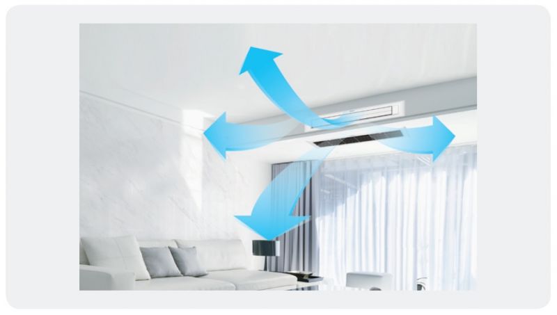 Do klimatyzatorów Slim DUCT można zamontować zaawansowany panel (opcja), który kieruje nawiew w różnych kierunkach, jednocześnie zwiększając efektywność rozprowadzenia nawiewu w pomieszczeniu; panele dostępne z wyświetlaczem temperatury lub bez.