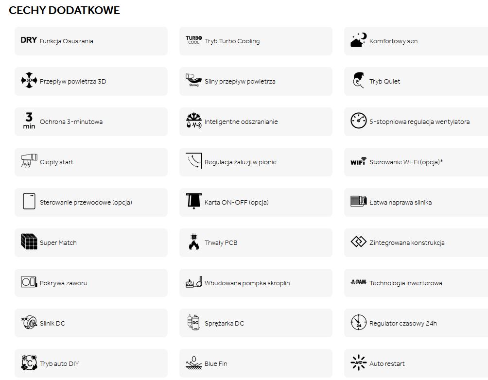 Funkcje klimatyzatora: