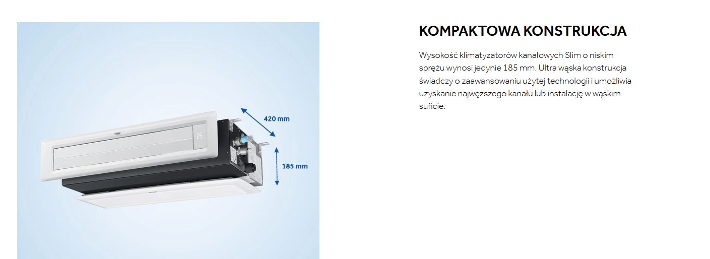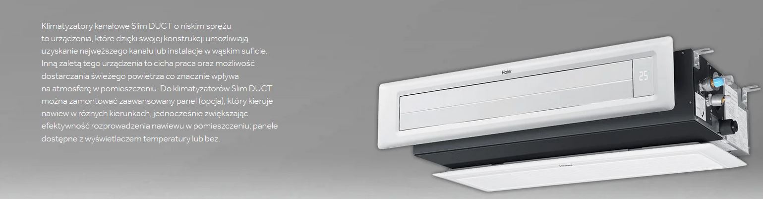 Klimatyzatory kanałowe Slim DUCT o niskim sprężu to urządzenia, które dzięki swojej konstrukcji umożliwiają uzyskanie najwęższego kanału lub instalacje w wąskim suficie.