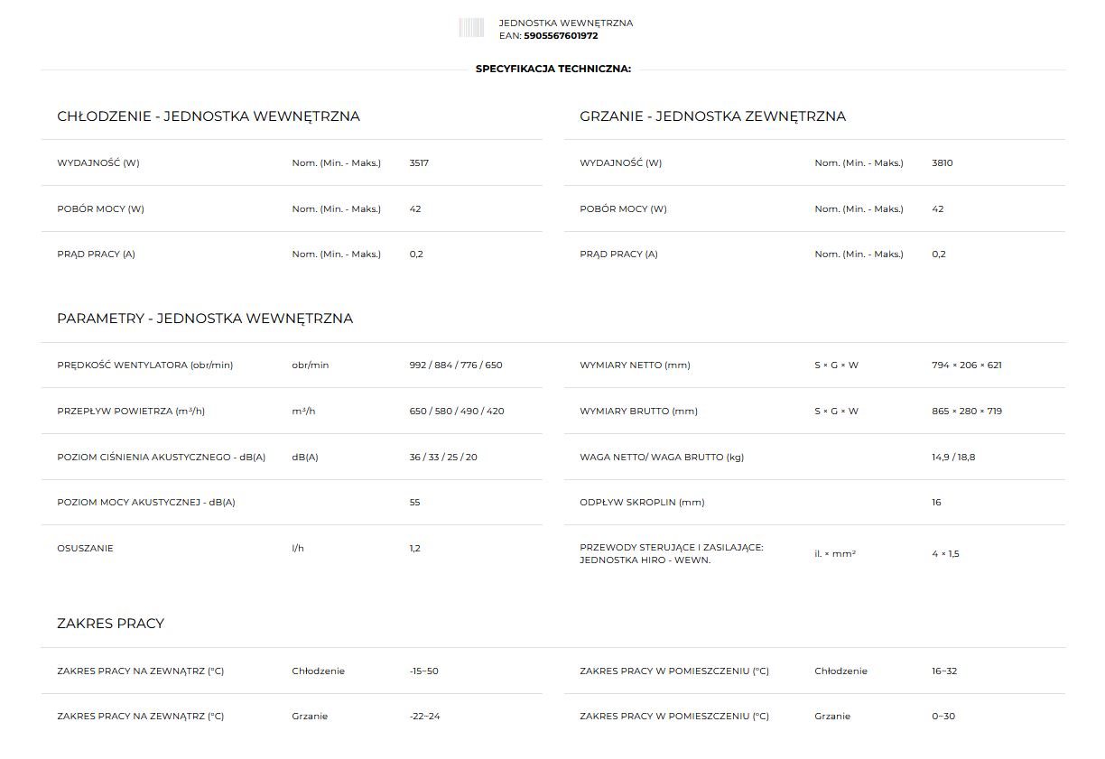 System zarządzania jednostką dostosowuje pracę sprężarki, wybierając jeden z 30 zakresów częstotliwości. Dzięki temu urządzenie łączy maksymalną wydajność z minimalnym zużyciem energii.