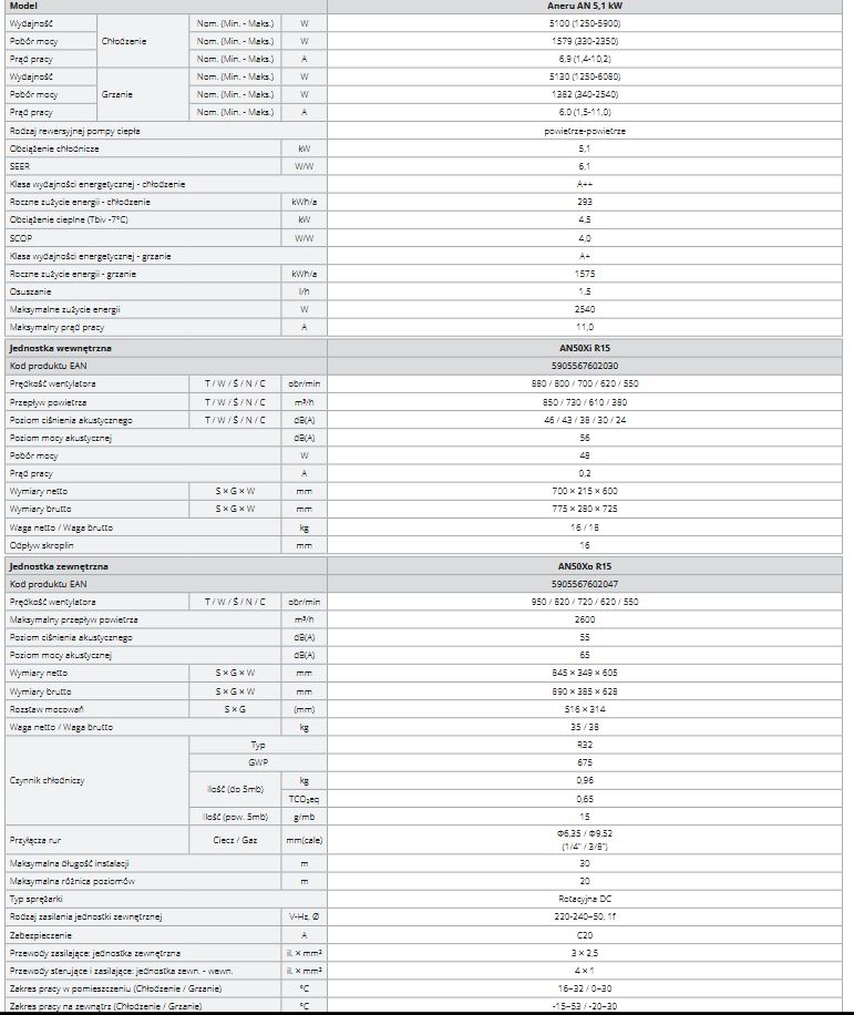 połączenie jednostki wewnętrznej i zewnętrznej instalacją chłodniczą do 2,0 metrów (możliwe przedłużenie do 15 metrów )