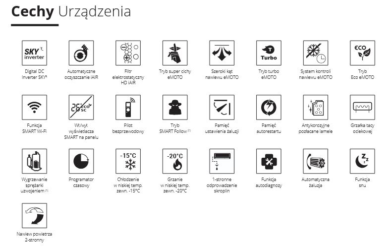 Funkcje klimatyzatora:
