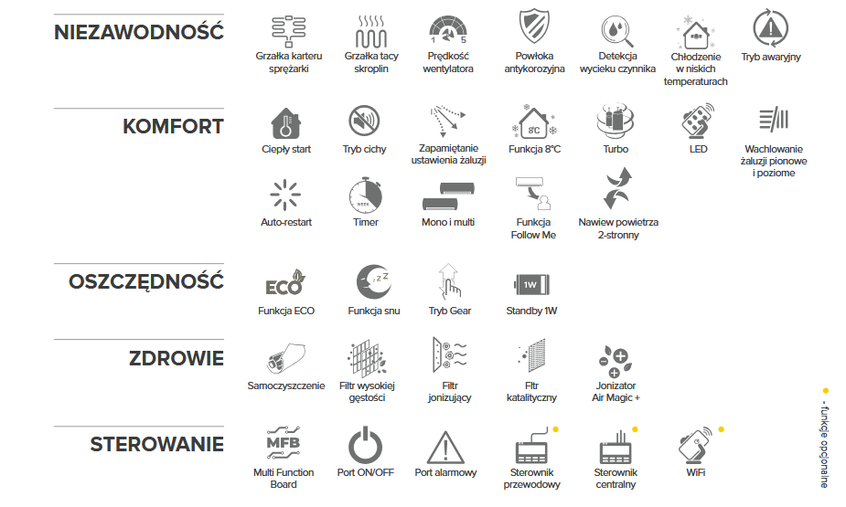 Funkcje klimatyzatora: