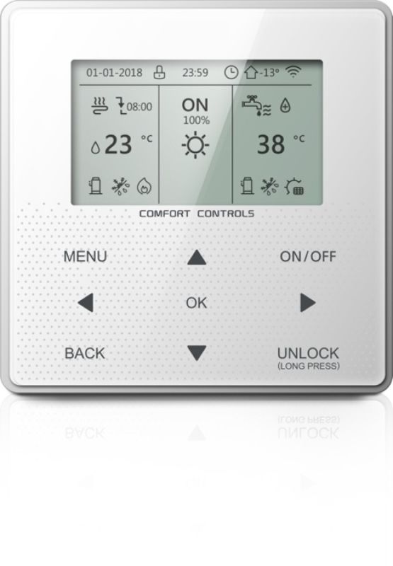 Pompy ciepła M-Thermal II Generacji standardowo wyposażone są w sterownik przewodowy z menu w języku polskim, za pomocą którego możliwe jest sterowanie pracą urządzenia i całym systemem grzewczym.