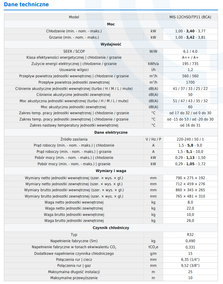 Urządzenia charakteryzują się wysokim współczynnikiem efektywności A++ dla chłodzenia i A+ dla grzania, a dostępne są w wydajnościach 3,4 i 5,1 kW.