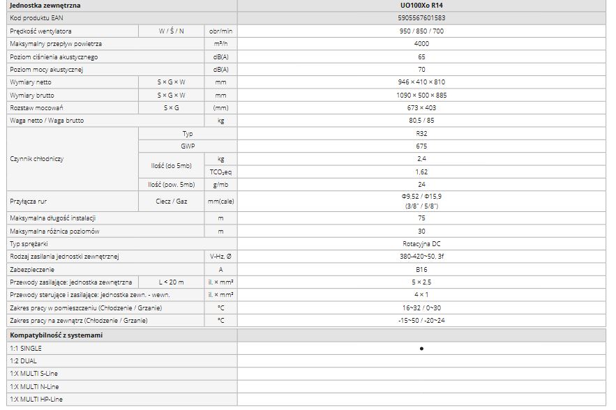 Jednostka może być montowana zarówno w pionie, jak i w poziomie (funkcja ta dostępna jest dla modeli o mocy od 5,3 kW).