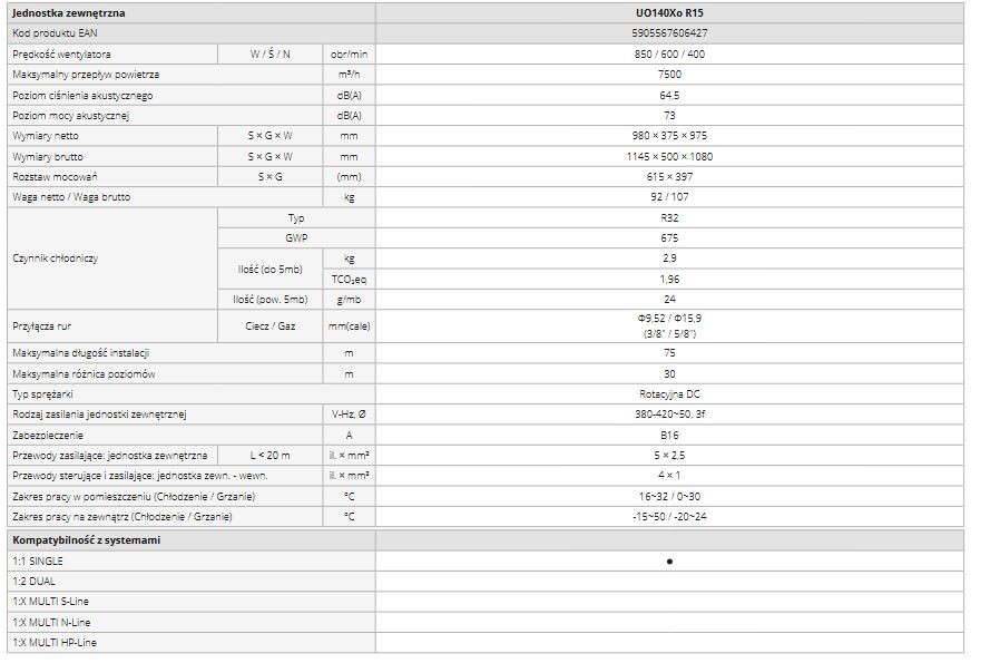 Jednostka może być montowana zarówno w pionie, jak i w poziomie (funkcja ta dostępna jest dla modeli o mocy od 5,3 kW).