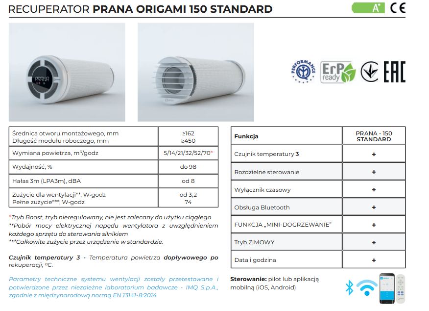 Rekuperator Prana Standard jest bardzo solidnym wyborem, jeśli zależy Ci na dobrej wentylacji z odzyskiem ciepła, a nie masz możliwości / ochoty instalować dużej, centralnej wentylacji z rozbudowanymi kanałami.