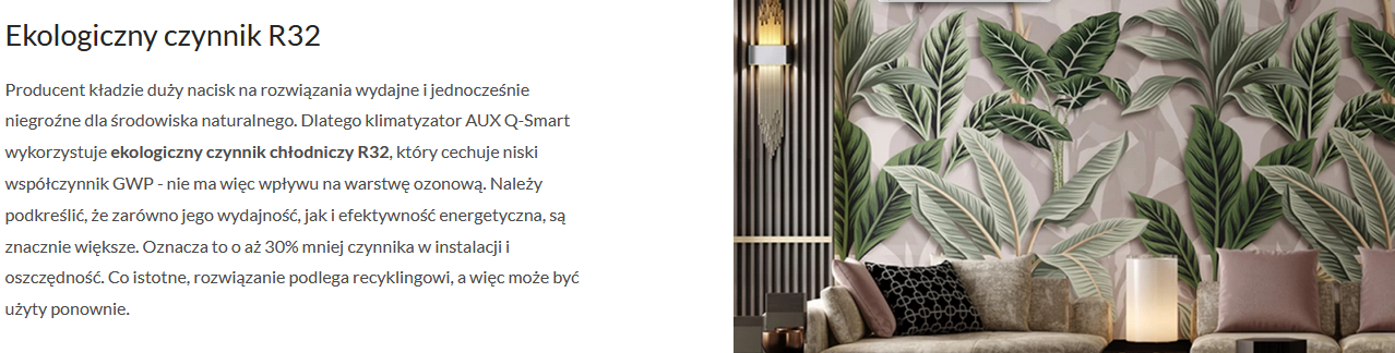 Klimatyzator AUX Q-Smart to rozwiązanie cechujące się wysoką klasą energetyczną A++ w trybie chłodzenia i A+ w trybie grzania.