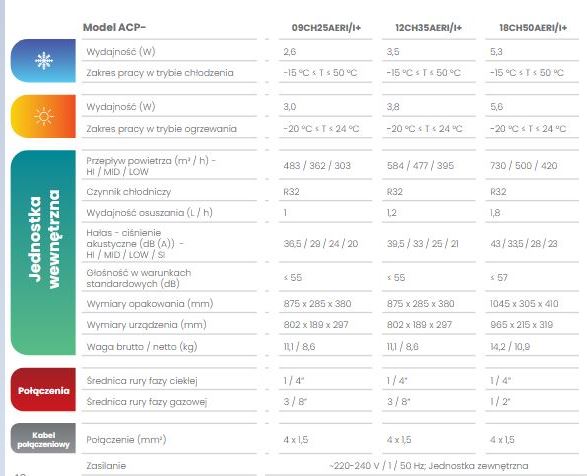 Ogromną zaletą, sprawiającą, że urządzenie jest tak bardzo oszczędne jest funkcja ECO, po włączeniu której zużywa się do 60% mniej energii elektrycznej. Dodatkowo klimatyzator może pracować w trybie grzania nawet do -20°C temperatury zewnętrznej, a także w trybie chłodzenia do -15°C. (posiada wbudowaną grzałkę tacy skraplacza)