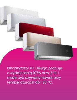 R+ Design to nowa, ulepszona generacja klimatyzatorów, która charakteryzuje się efektywnością energetyczną A+++ w chłodzeniu i A++ w ogrzewaniu.