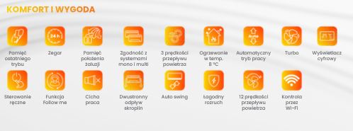 Klimatyzacja posiada możliwość wyposażenia w moduł Wi-Fi - ułatwia to kontrole urządzenia poprzez wygodną aplikację mobilną, która pozwoli na sterowanie klimatyzatorem będąc daleko od domu.