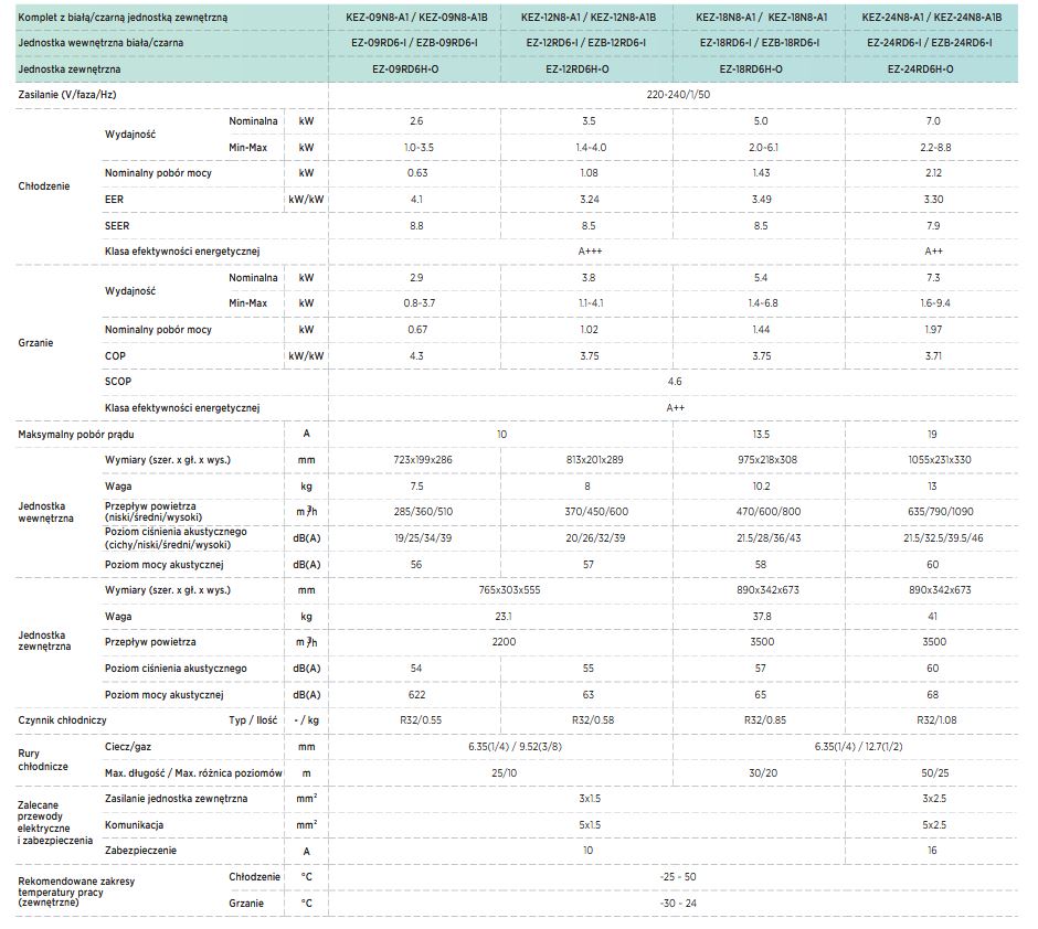 • Dwustronna instalacja skroplin – większa elastyczność montażu.