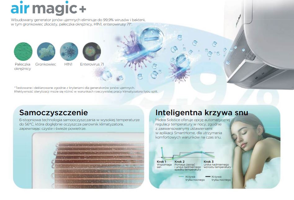 Midea Solstice to klimatyzator pełen innowacyjnych funkcji, które zapewnią Ci komfort w każdej sytuacji: