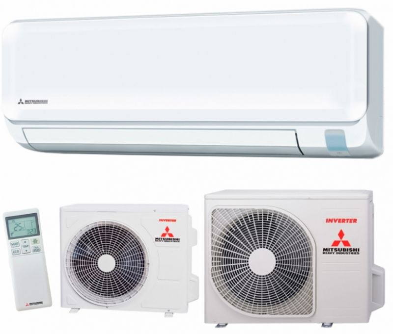 Typoszereg zestawów urządzeń klimatyzacyjnych obejmujących klimatyzatory ścienne SRK ZTL-W oraz jednostki zewnętrzne Mitsubishi Heavy Industries w zakresie wydajności chłodniczej od 1,5 do 7,10 kW.