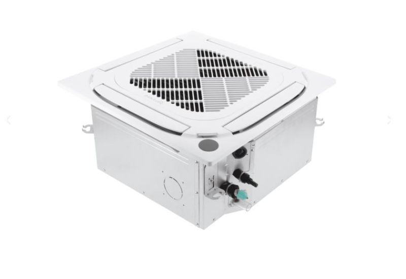 Klimatyzatory kasetonowe są projektowane do montażu w sufitach podwieszanych, bo wtedy można je częściowo lub całkowicie zabudować i widać tylko kratkę nawiewu.