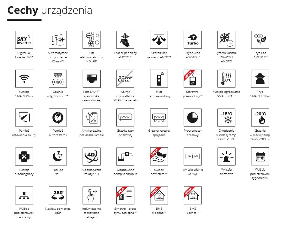 Funkcje klimatyzatora: