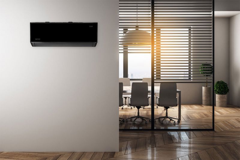 Głęboka czerń matowej obudowy w połączeniu z czarnym lustrzanym czołem składają się na nowoczesny i uniwersalny wygląd klimatyzatora, który sprawdzi się we wnętrzach o różnym stylu. Oszczędny design, minimalistyczna forma oraz głęboka czerń matowej obudowy i połyskliwego frontu stwarzają nieograniczone możliwości aranżacji urządzenia.