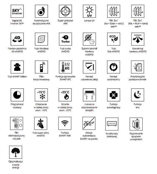 Lampa UV, jonizator i bogaty system filtracji eliminują drobnoustroje, bakterie, grzyby i substancje toksyczne sprawiając, że w klimatyzowanym pomieszczeniu powietrze jest zdrowsze.
