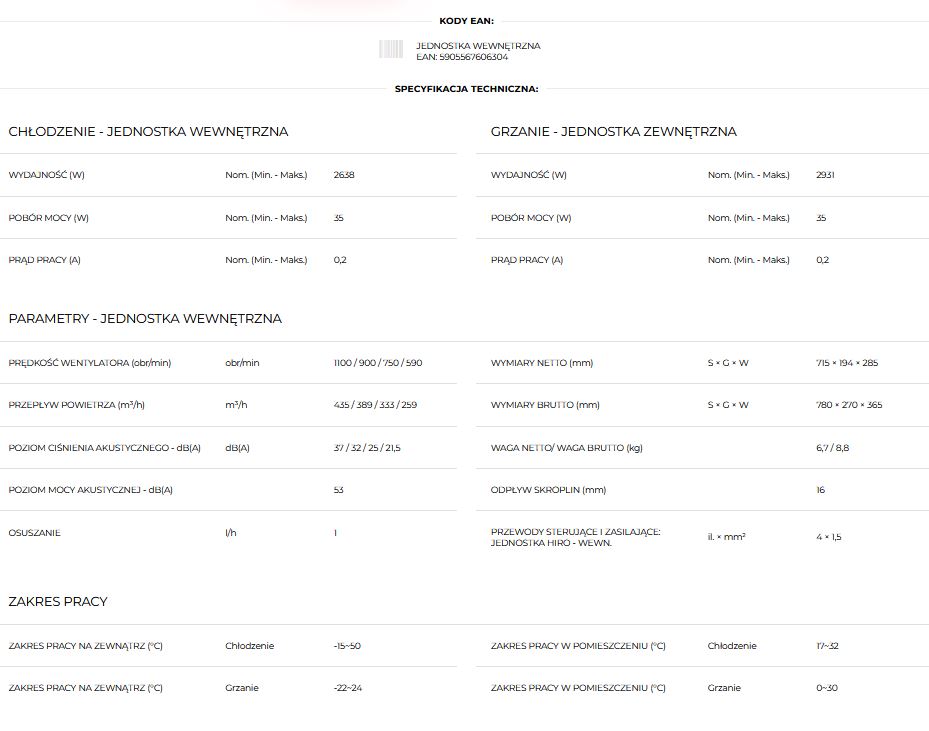 - Systemy optymalizacji pracy - Sygnalizacja wycieku freonu,funkcja uruchomienia awaryjnego,programator czasowy