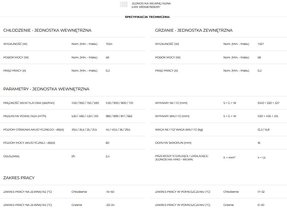 Rotenso UKURA 7 KW do systemów MultiSplit