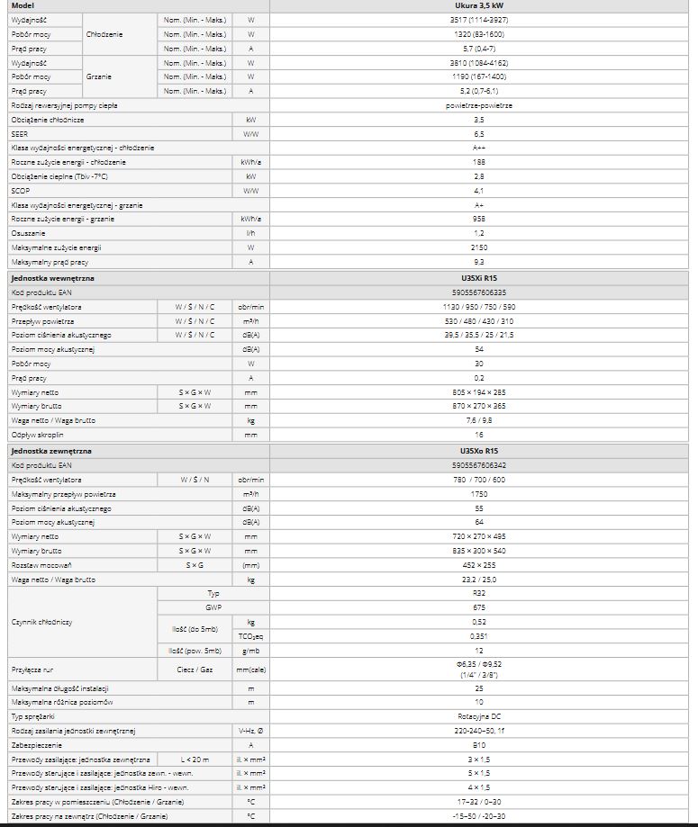 Zastosowana technologia inverterowa umożliwia sprawną pracę klimatyzatora nawet przy niskich temperaturach na zewnątrz.